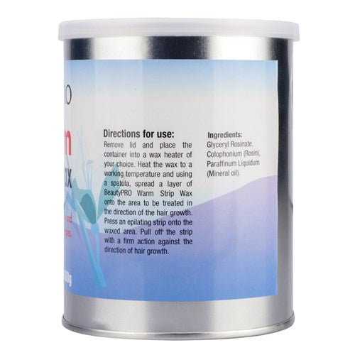 BeautyPRO Warm Strip Wax is an all-purpose natural pine resin strip wax with a honey-like consistency when heated. Ideal for the removal of body and facial hair on all skin types. BeautyPRO 800g wax canisters slot straight into the 1000cc BeautyPRO and BeautyPRO Wax Expert heaters. No pre-melting, no mess!
